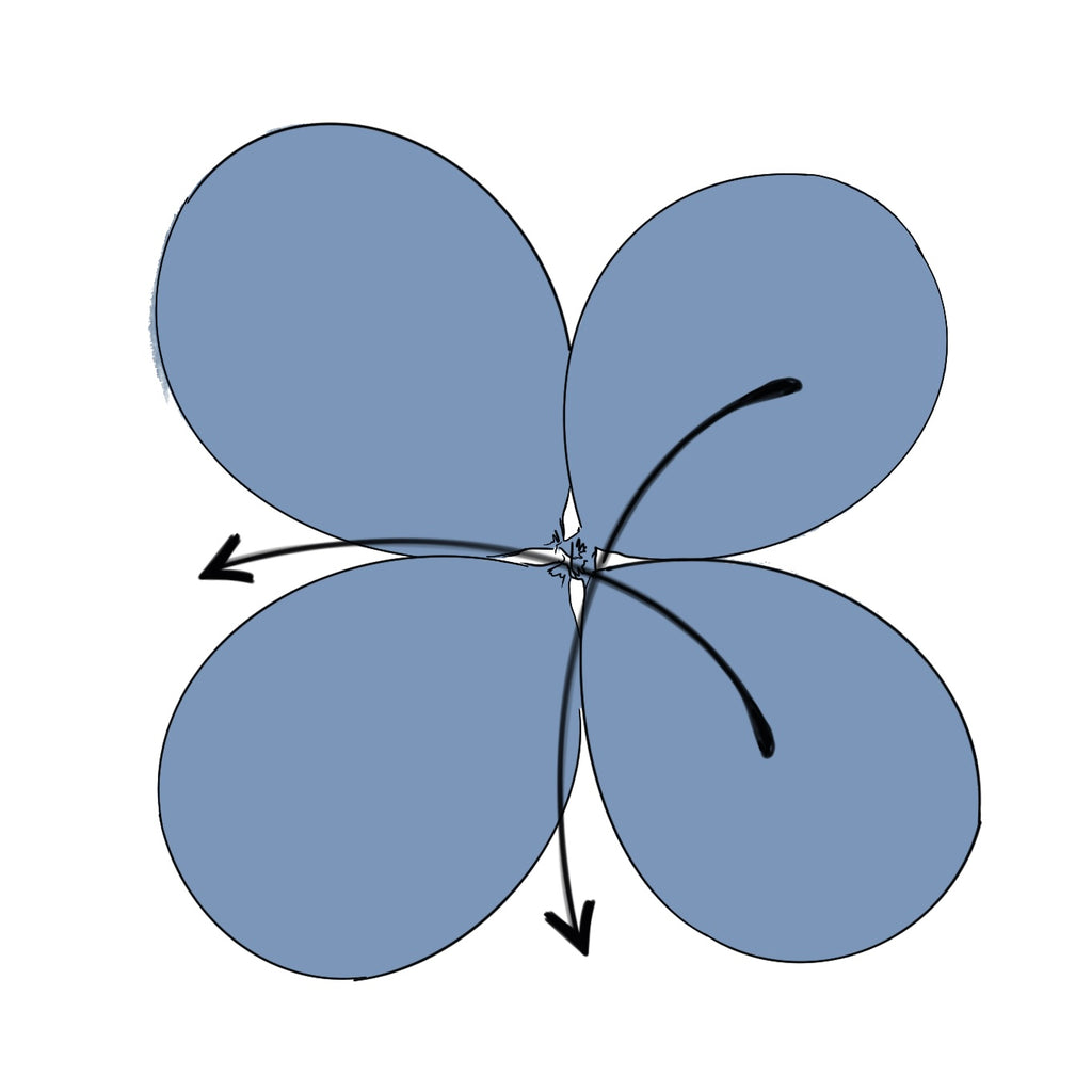 With your paired balloons, take 2 pairs and intertwine them so they create a cluster of 4 balloons. Do this by placing the necks (knotted ends) of one pair across the other and push the balloons down so they form a cross shape. Finally, grip one balloon from each pair and rotate over into opposite directions until they change positions and the balloons lay flat.