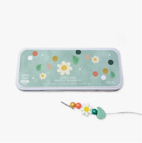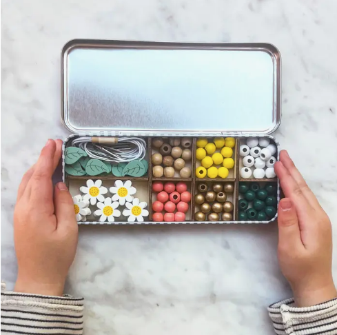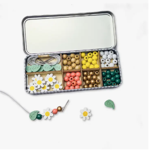 Introducing Daisy wooden bead bracelet kit, now in a reusable gift tin!